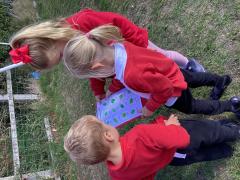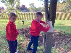 This week in Forest School we learnt all about trees. We worked in little groups and used a tree identification sheet to see which trees are in our wood and on the field. We also did some bark rubbing, had a fire and some hot chocolate and a biscuit!