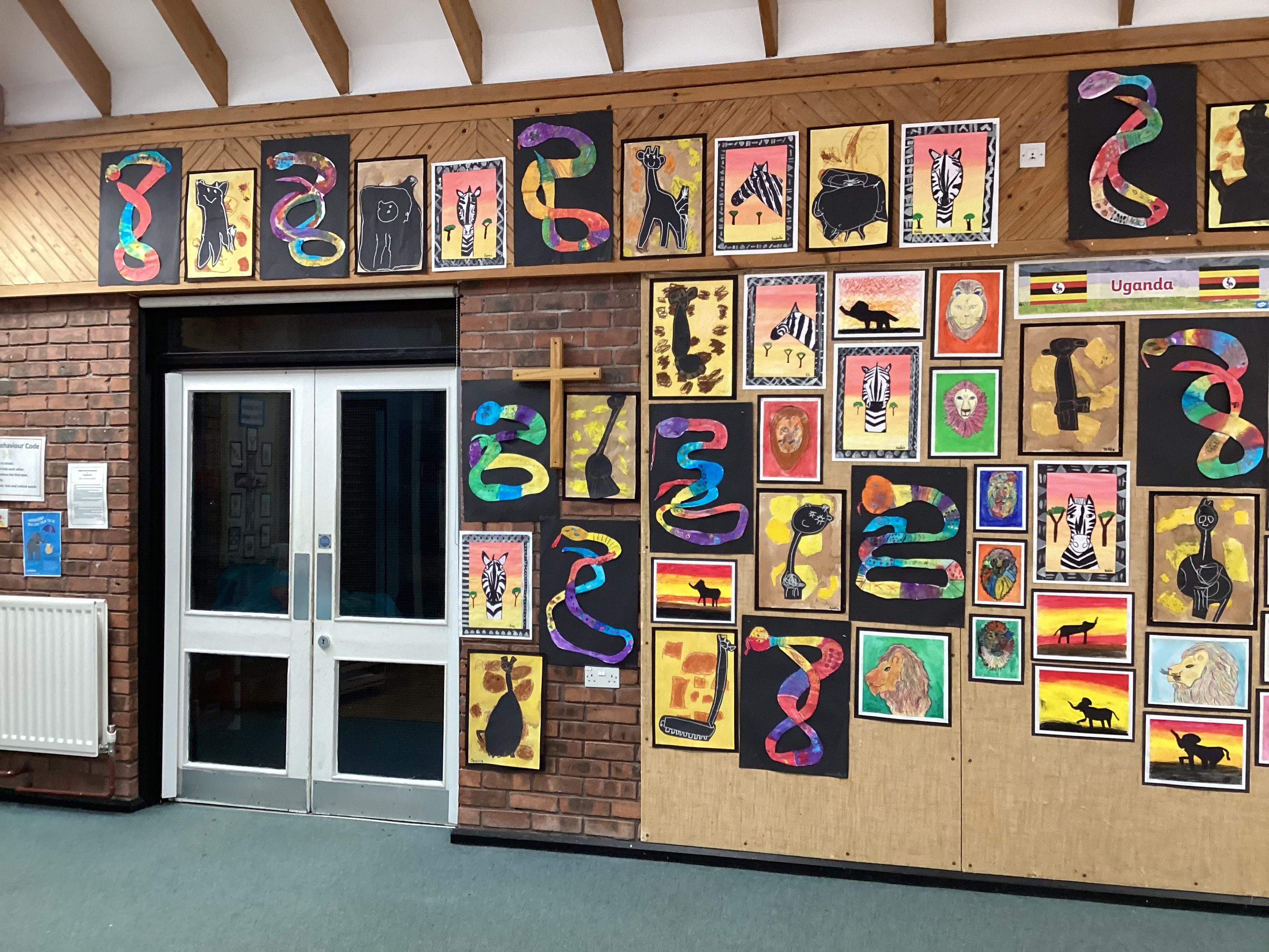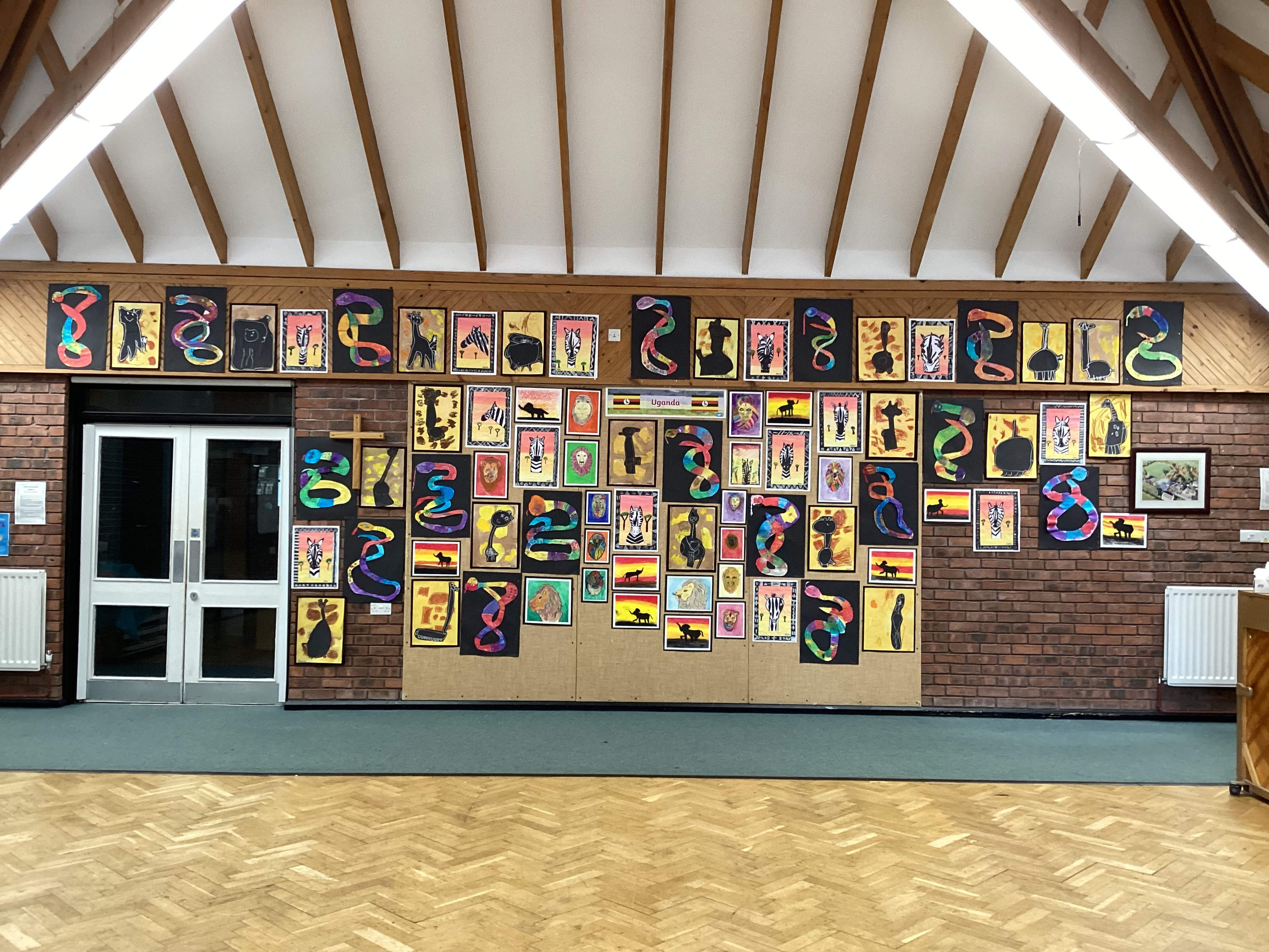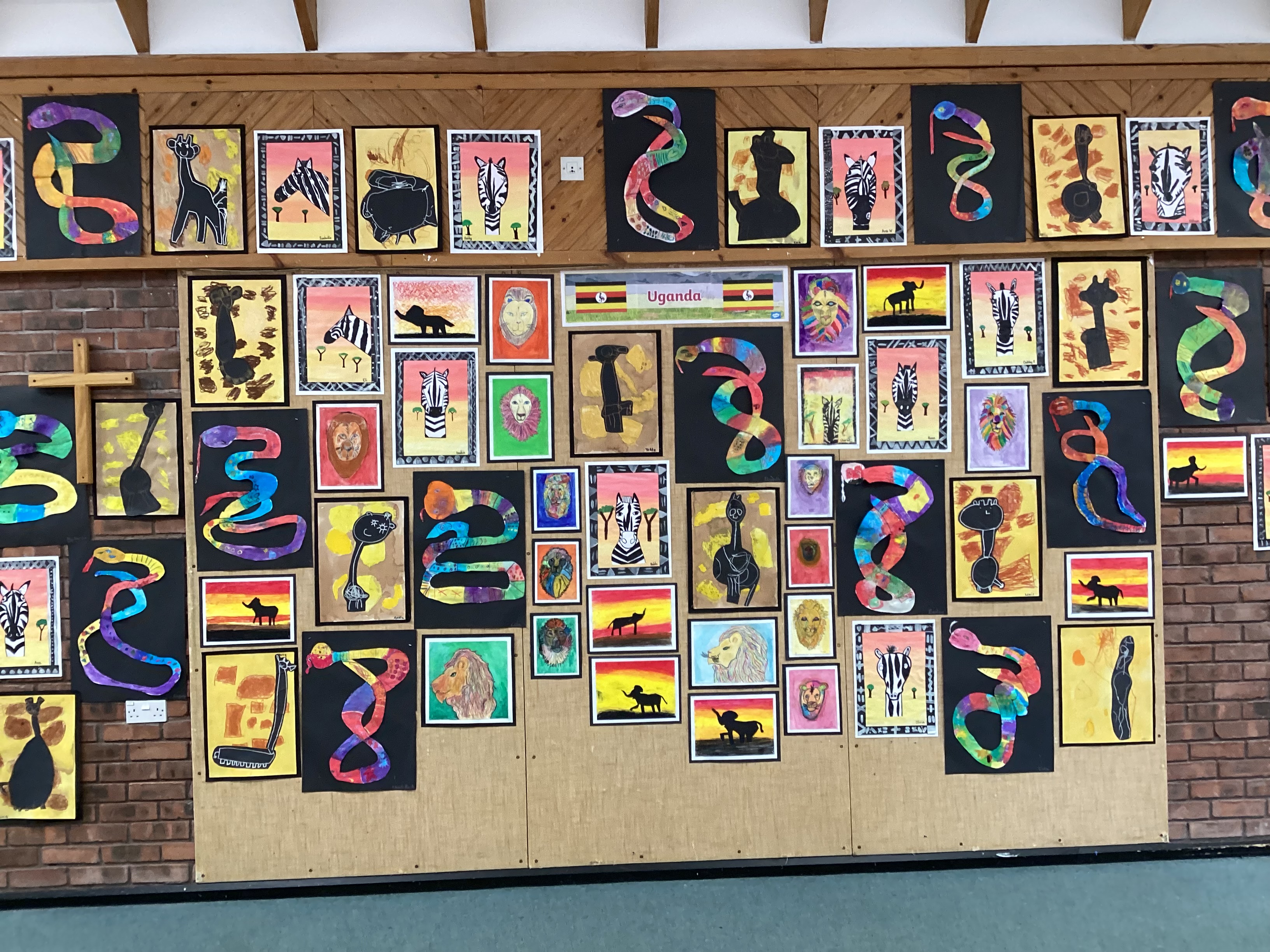 On Monday we had a Uganda Day in preparation for Mrs Knight's adventure with Adam and Duddon and Tarvin church. Mrs Knight shared photographs of the school she is visiting and everyone completed some work to go in a scrapbook about Duddon that Mrs Knight is taking with her.The older children made fact files about Uganda and everyone found out about different animals that live in Uganda. Each class completed some art work which looks spectacular!