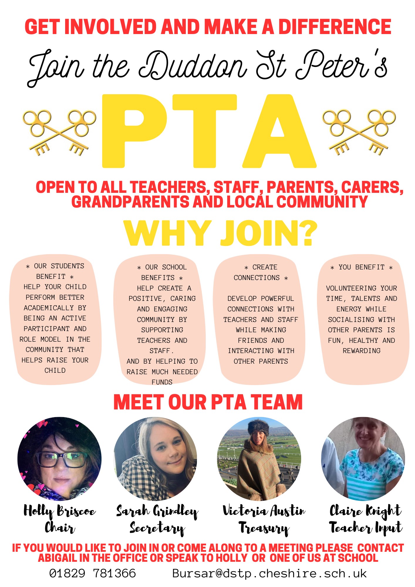 Everyone is very welcome to come along to meetings, which are held in school.